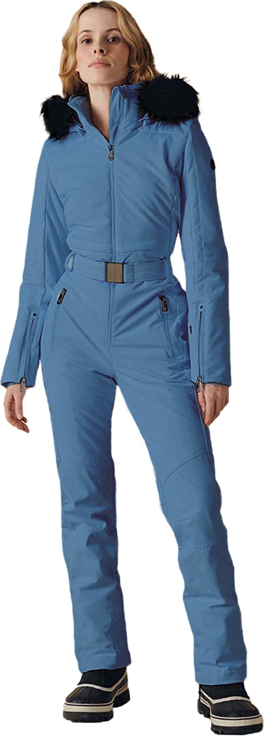 Горнолыжный комбинезон выполнен из стретчевой ткани, растягивающейся в четырех направлениях, имеет эргономичный крой, продуманные детали и надежную фурнитуру YKK. Высокотехнологичная влаговыводящая мембрана обеспечивает комфорт при интенсивных физических нагрузках, защищая от ветра и мокрого снега. Не ограничивая свободу движений, прилегающий комбинезон вместе с тем традиционно подчеркивает женственный силуэт за счет эластичной вставки на талии и регулируемого ремня и делает узнаваемой фигуру горнолыжницы на склоне. Достаточная плотность легкого, современного утеплителя гарантирует сохранение тепла не только в динамике, но и в статике.